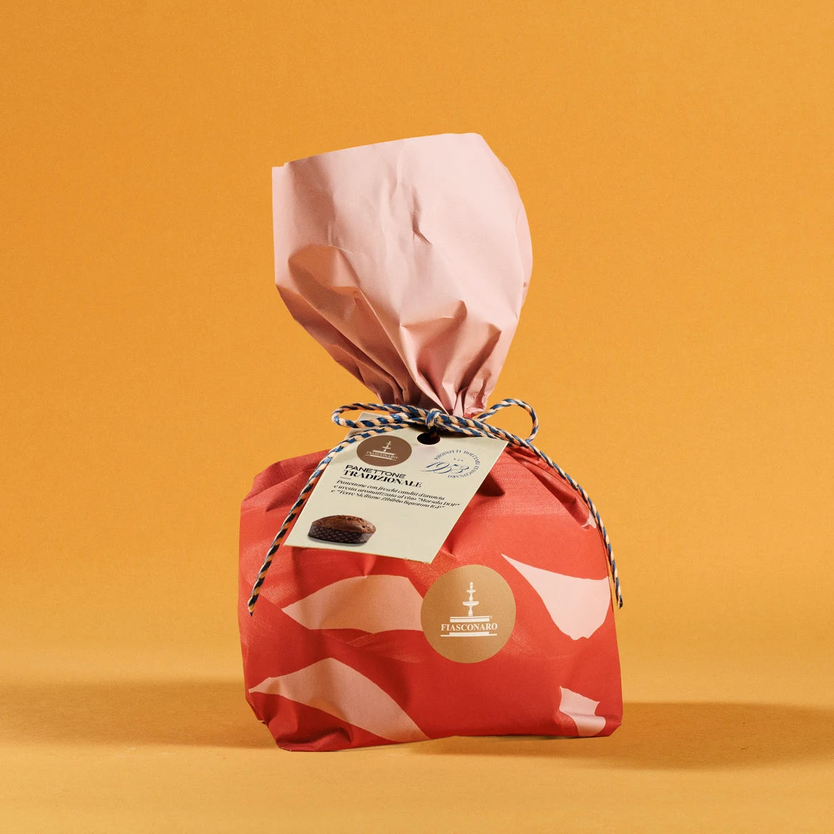 El Panettone Tradizionale de Fiasconaro es una creación artesanal que combina la suavidad de su masa con trozos de naranja confitada y pasas, aromatizado con los emblemáticos vinos sicilianos Marsala DOP y Zibibbo IGP. Su proceso de fermentación lenta de 36 horas garantiza una textura esponjosa y un sabor profundo y equilibrado.