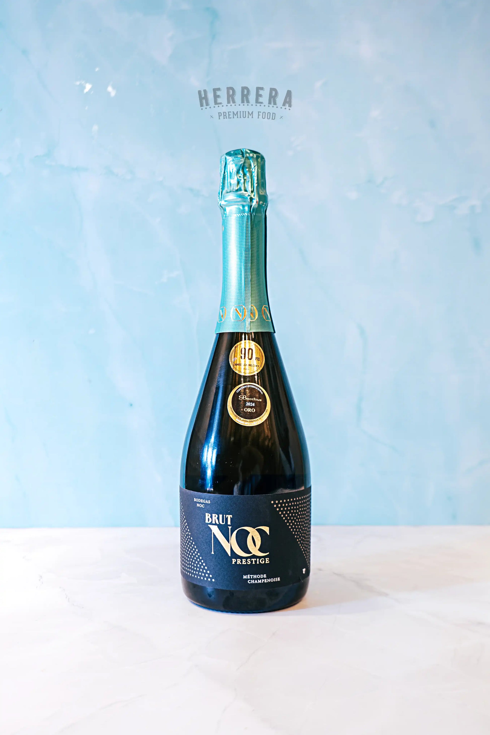 En HerreraFood te presentamos NOC Prestige Brut, un espumoso único elaborado en los Montes de Toledo mediante el método tradicional champenoise. Está elaborado con una combinación exclusiva de uvas Viognier y Chardonnay, lo que lo convierte en el único espumoso del mundo con esta variedad como protagonista.