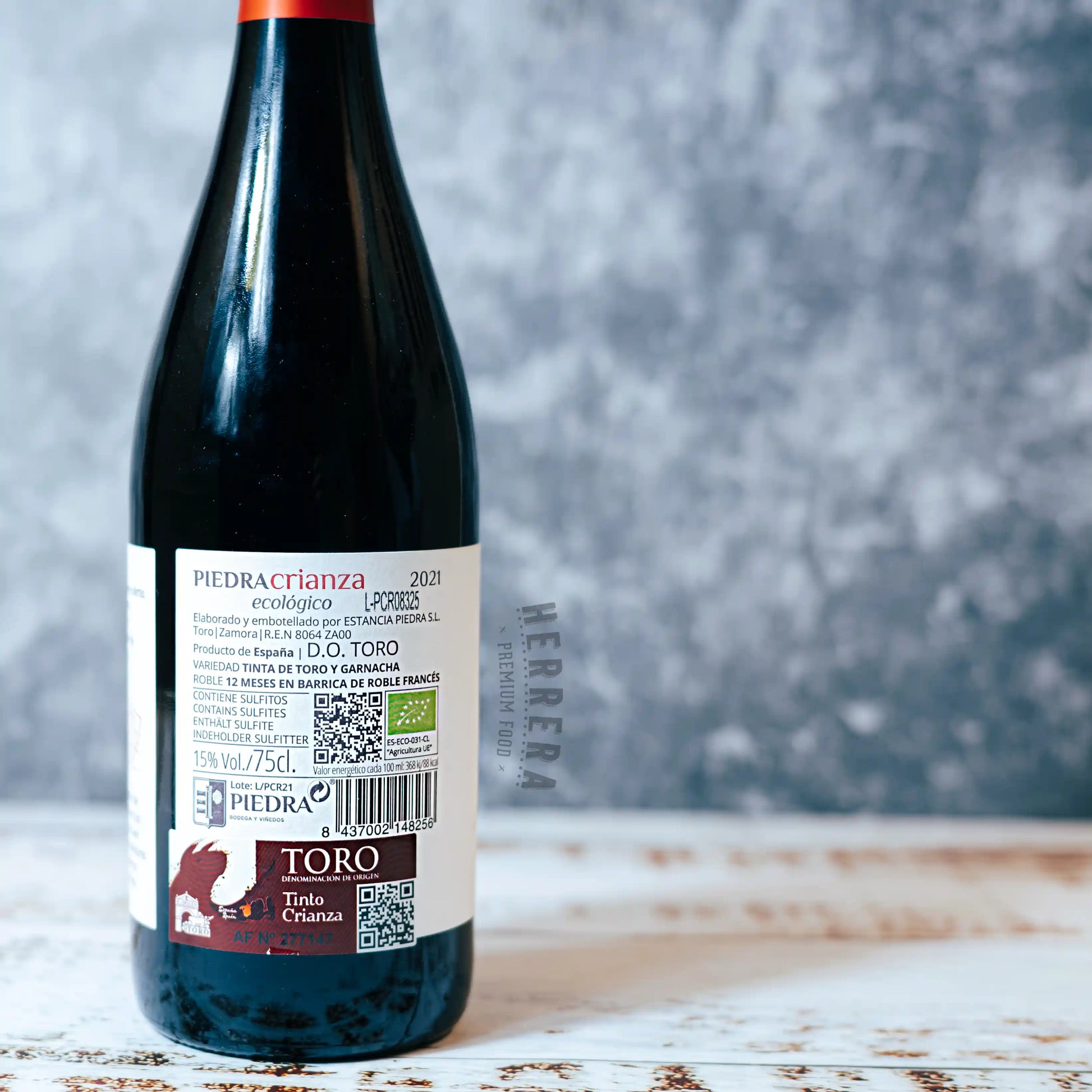 El Piedra Crianza es el resultado de una cuidada selección de uvas Tinta de Toro procedentes de agricultura ecológica, vinificadas con precisión y criadas durante 12 meses en barricas de roble, logrando un equilibrio perfecto entre fruta, madera y elegancia.