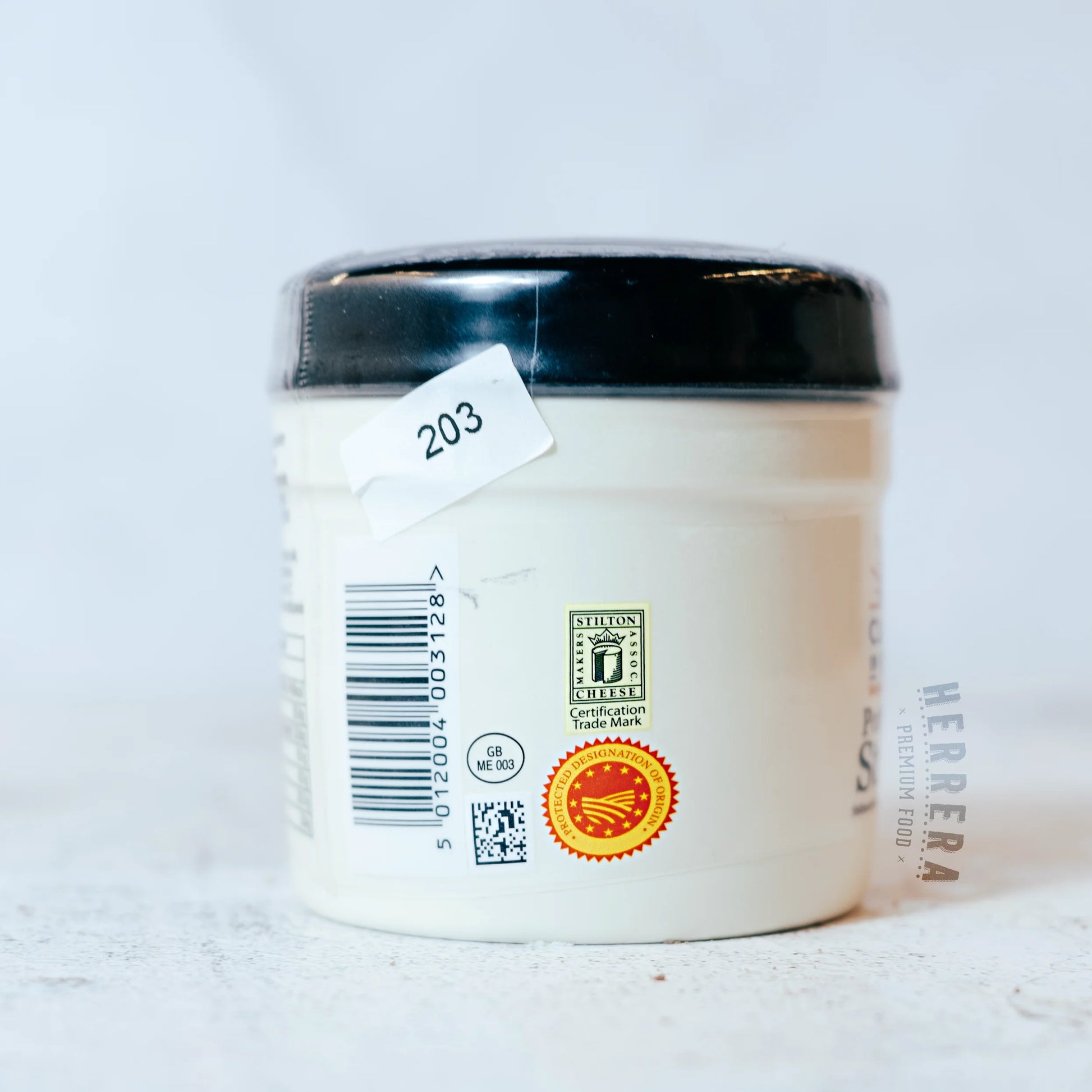 Cada tarro de este Stilton contiene un queso de pasta azul con vetas características, elaborado con leche de vaca pasteurizada procedente de granjas locales del Reino Unido. Su sabor audaz y su textura cremosa lo hacen perfecto para untar en pan, galletas saladas o disfrutar con una copa de vino tinto robusto.